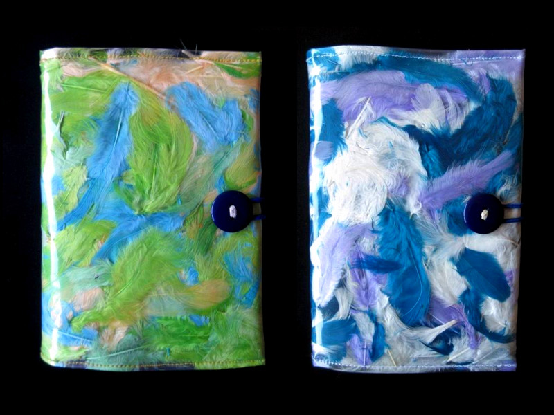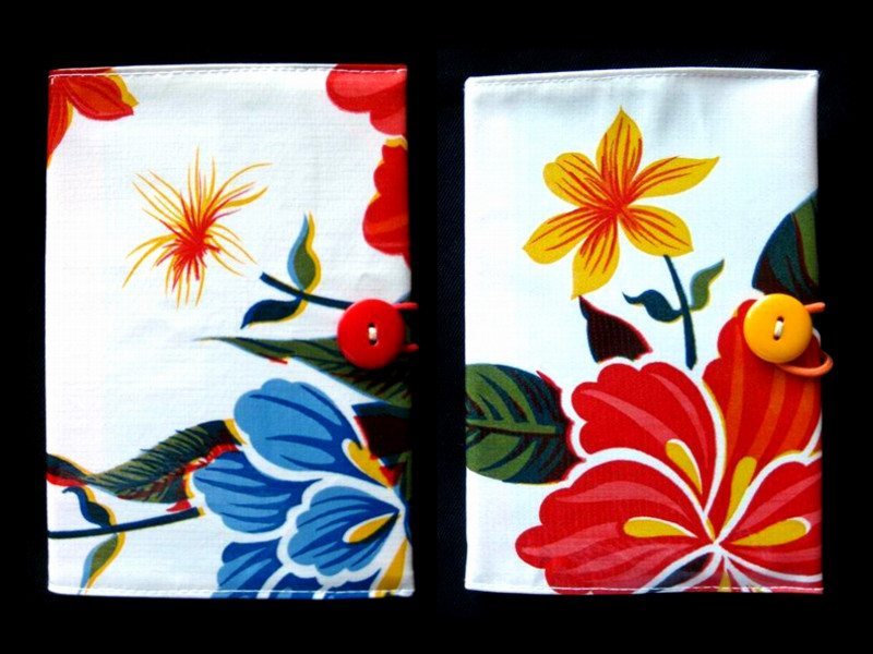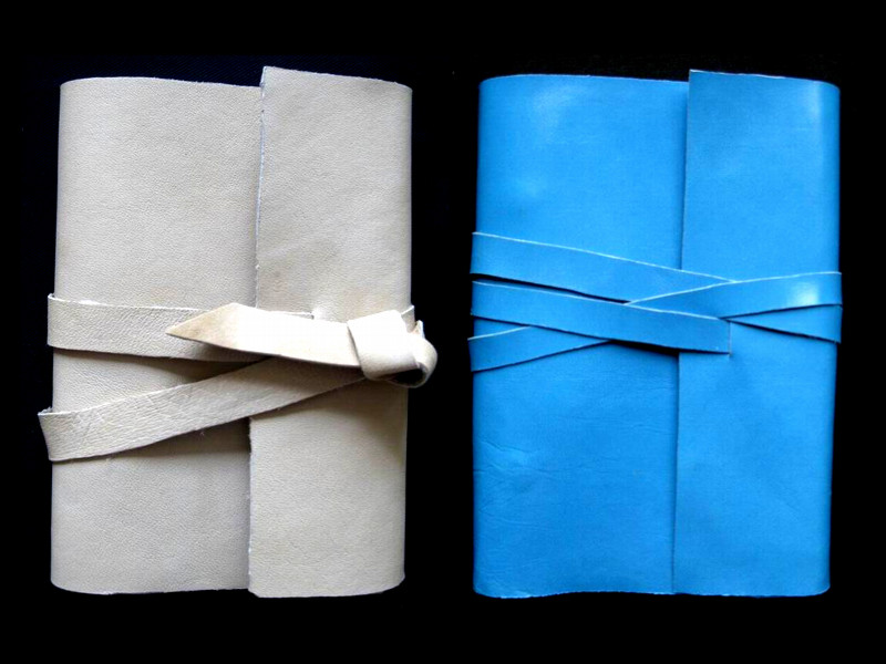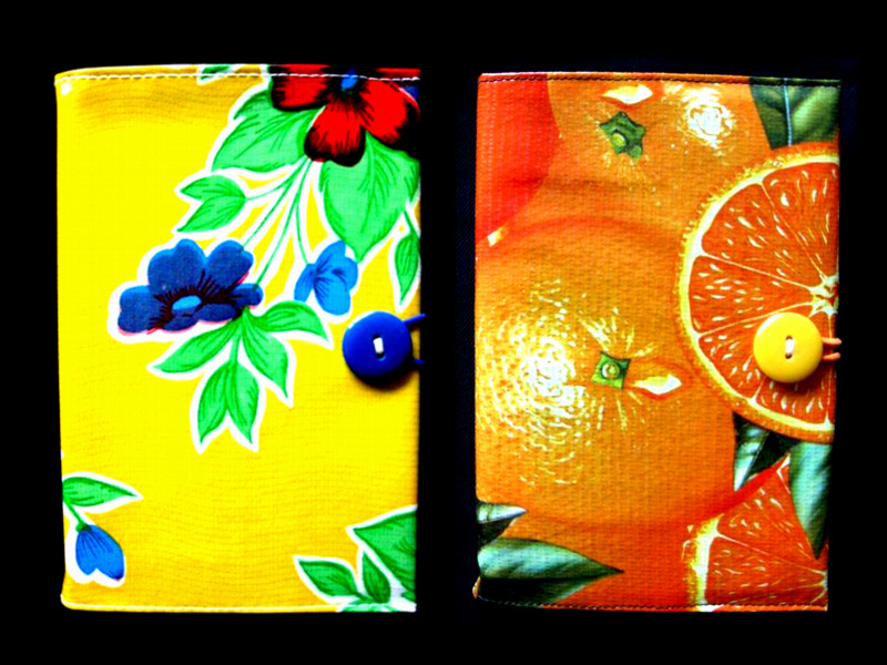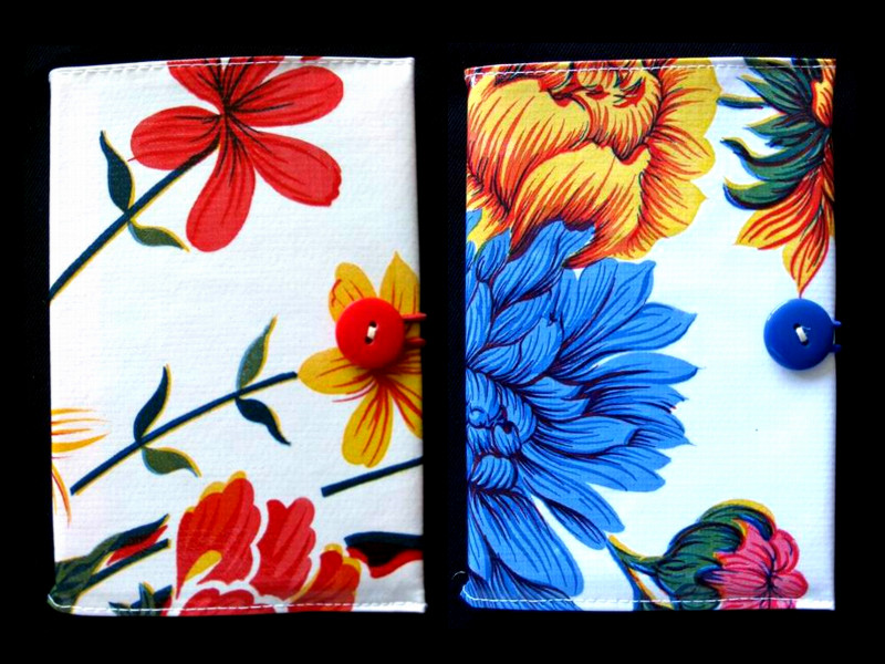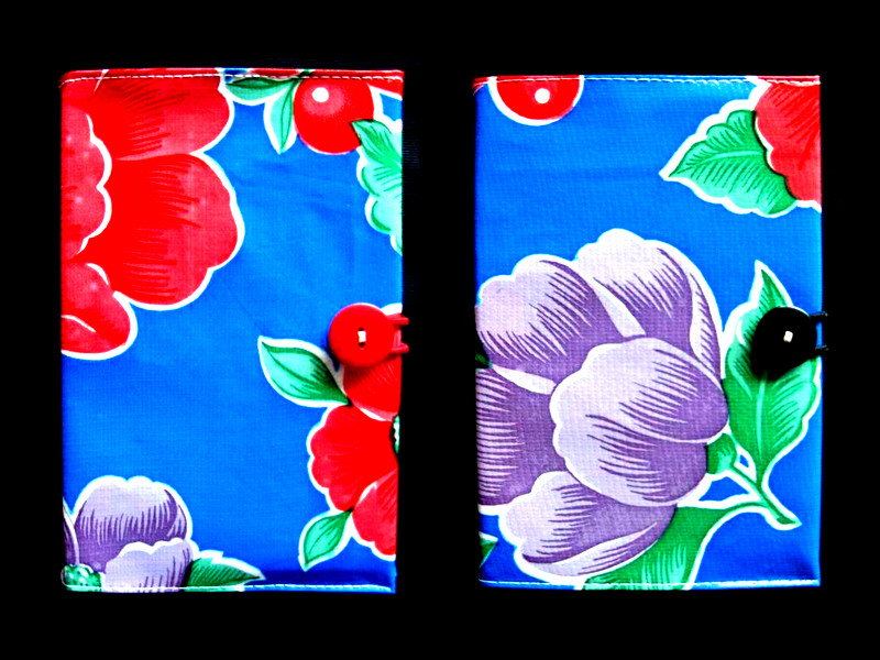 Die Hüllen der Notizhefte fallen immer unterschiedlich aus, da sie aus großen Wachstuchbahnen geschnitten werden.