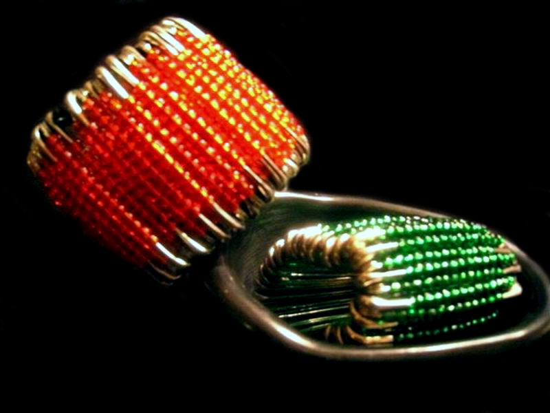 Stahl und Glasperlen.