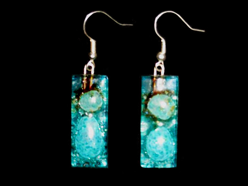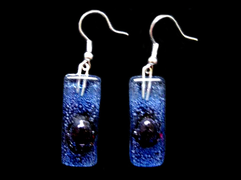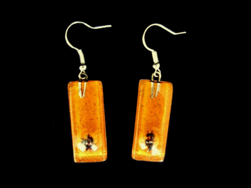 Glas & Metall. Es gibt die Ohrringe in den Farben: Orange, Blauviolett, Rot, Gelb, Blaugrün.